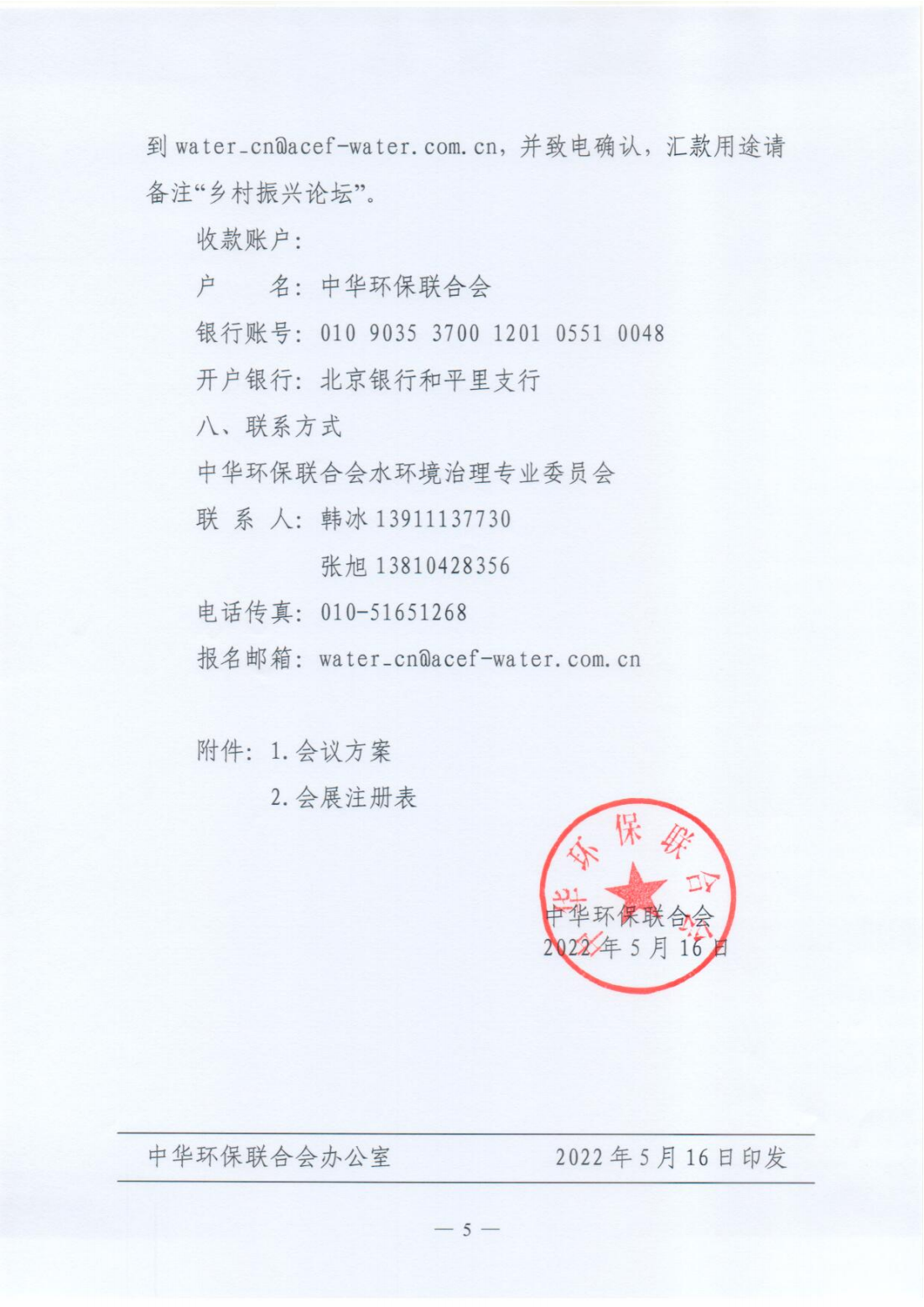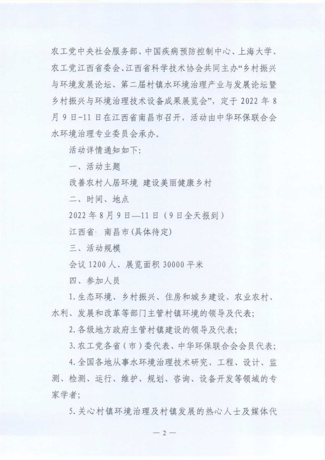 关于召开“2022乡村振兴与环境发展论坛、第二届村镇水环境治理产业与发展论坛暨乡村振兴与环境治理技术设备成果展览会”的通知