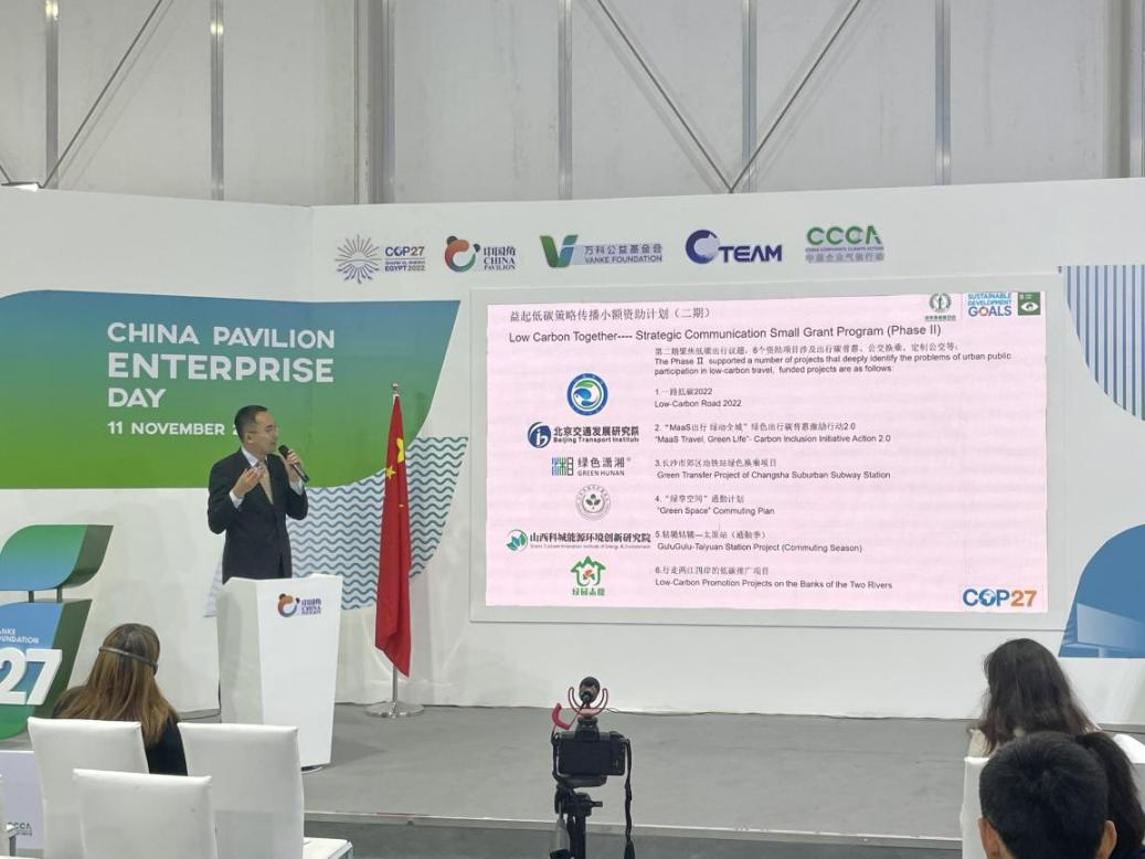 北京时间11月11日晚,由中华环保联合会绿色循环普惠专委会牵头主办的COP27中国角“数字碳中和与消费端碳减排”主题边会在埃及沙姆沙伊赫举办,碳中和国际研究院创始院长、原中石化董事长傅成玉先生,世界自然保护联盟“气候危机委员会”主席Manuel Pulgar-Vidal,联合国科学、政策和商业环境论坛秘书处主任Shereen Zorba出席并为边会致辞。 绿普惠碳中和中心主任张立、绿普惠联合创始人孙东杰以及来自阿里巴巴、美团、的宝科技、快电等机构现场分享各自实践案例,展示中国数字碳中和和消费端碳减排的创新实践,为促进国际社会协调共赢的全球气候行动贡献中国力量。