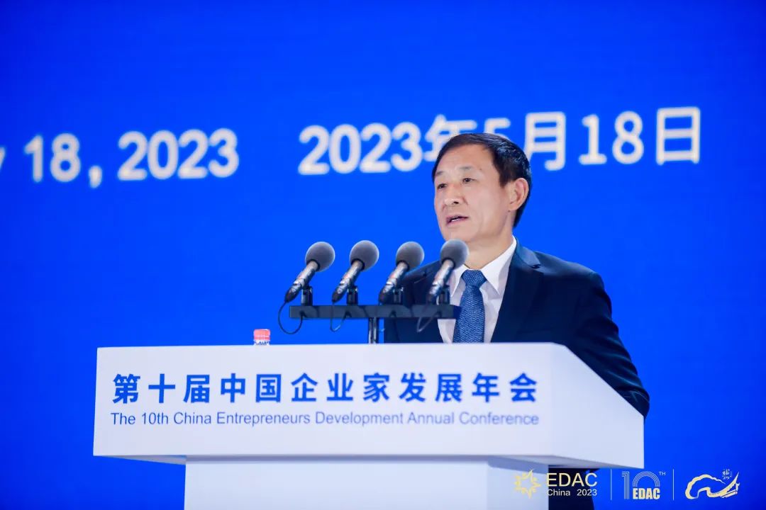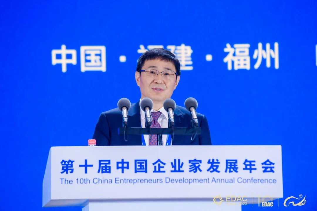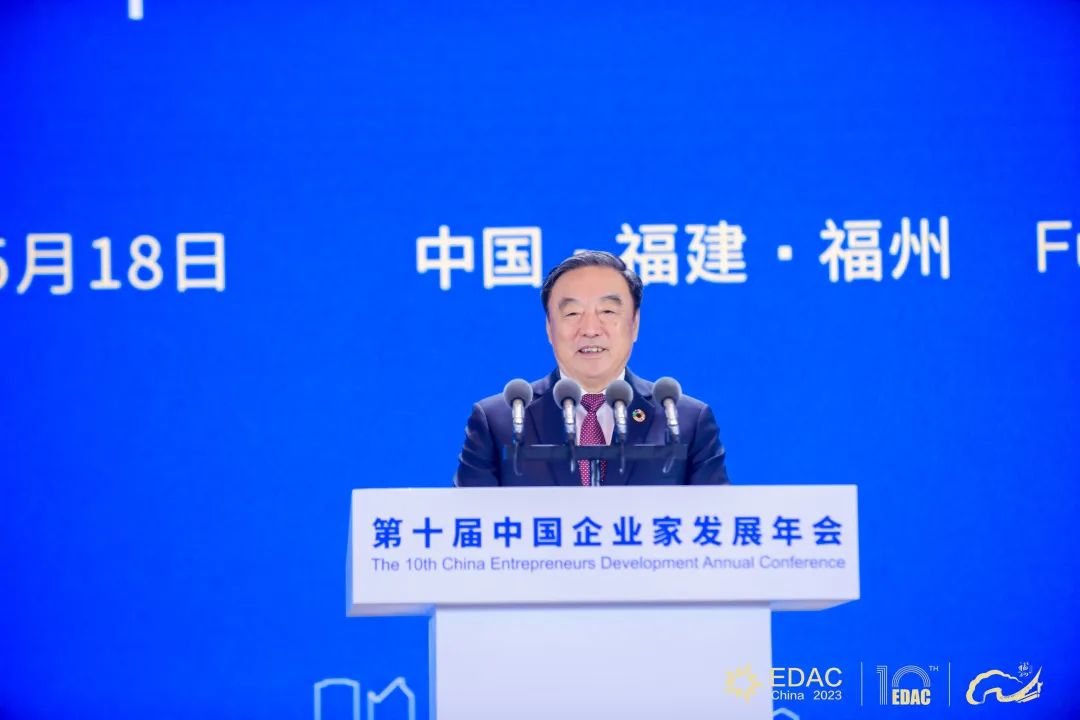 陈昌智致辞并宣布大会开幕。他强调,广大企业家要进一步坚定发展信心,加强自主创新,拓展国际视野,增强家国情怀,为强国建设、民族复兴伟业添砖加瓦、增光添彩。