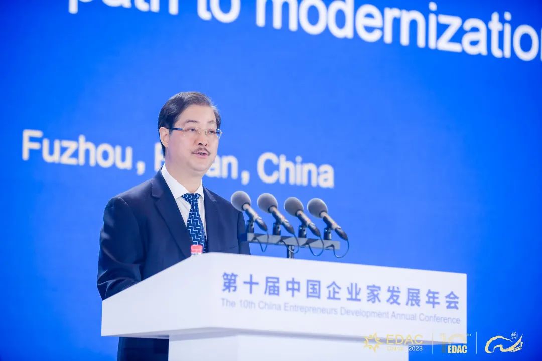 陈建安指出,期待广大企业家深刻理解中国式现代化的核心要义和本质要求,弘扬企业家精神,积极投身中国式现代化伟大实践,在新征程中实现高质量的发展。