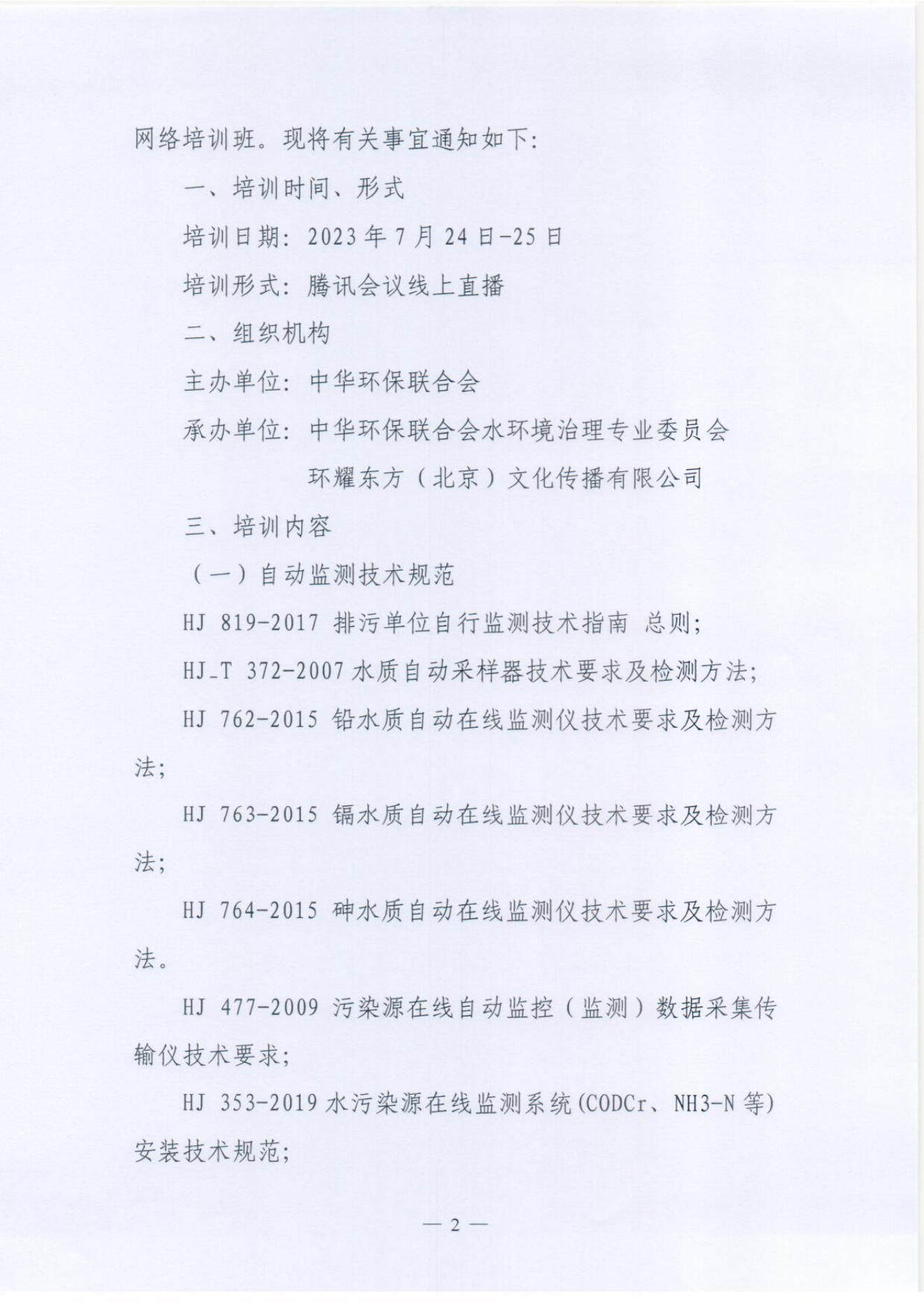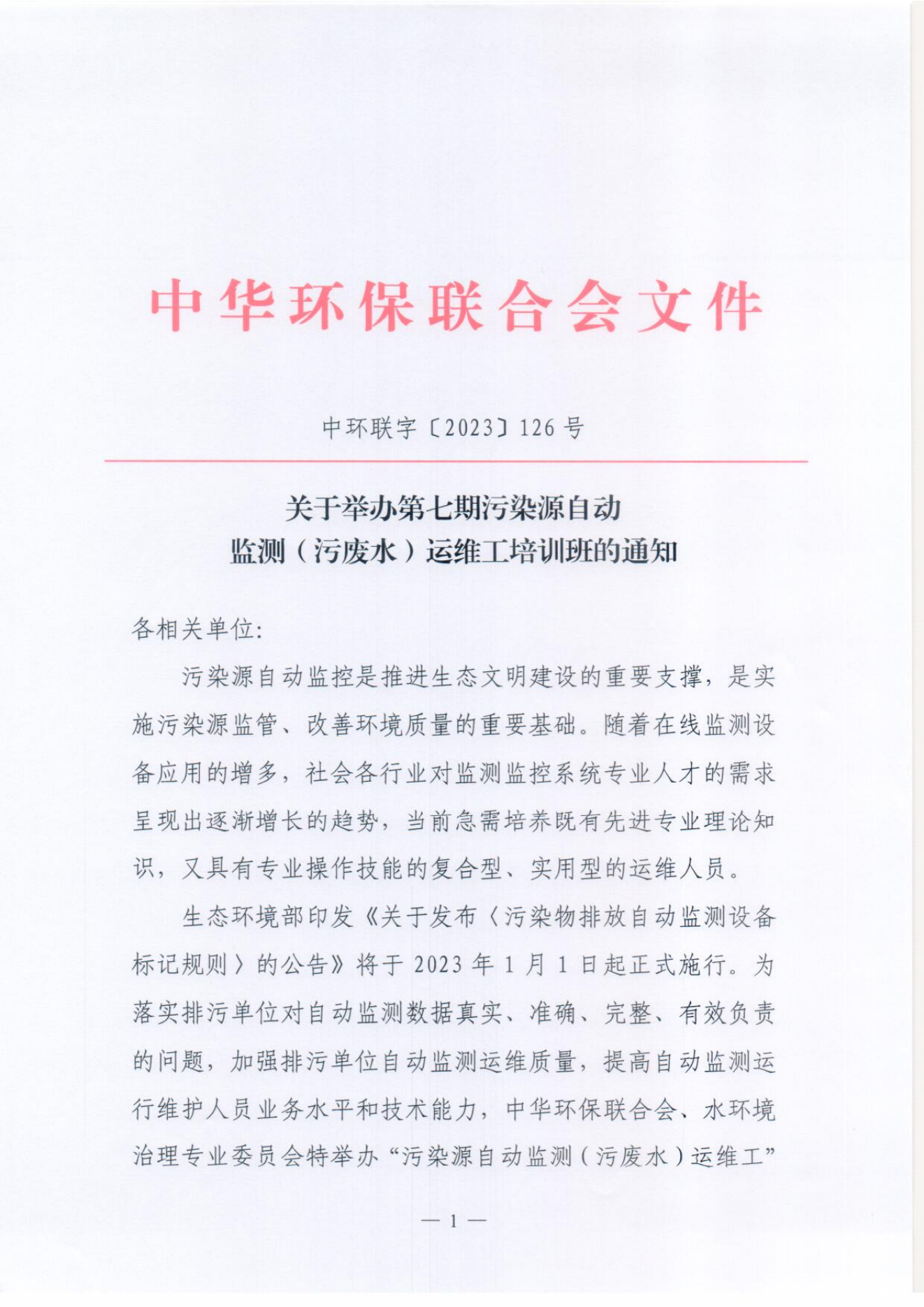 关于举办第七期污染源自动监测(污废水)运维工培训班的通知