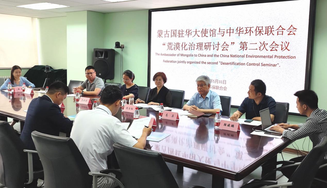 近日,中华环保联合会与蒙古国驻华大使馆联合举办荒漠化治理研讨会第二次会议,双方本着科学、诚恳、务实的态度,在中蒙两国签署的荒漠化治理双边合作文件精神指导下,进一步探讨共同关注并希望实质推动的工作项目:公益植树、节水灌溉与生态农业、光伏植草畜牧混业治沙等,深入研究项目可行性及具体行动路线。