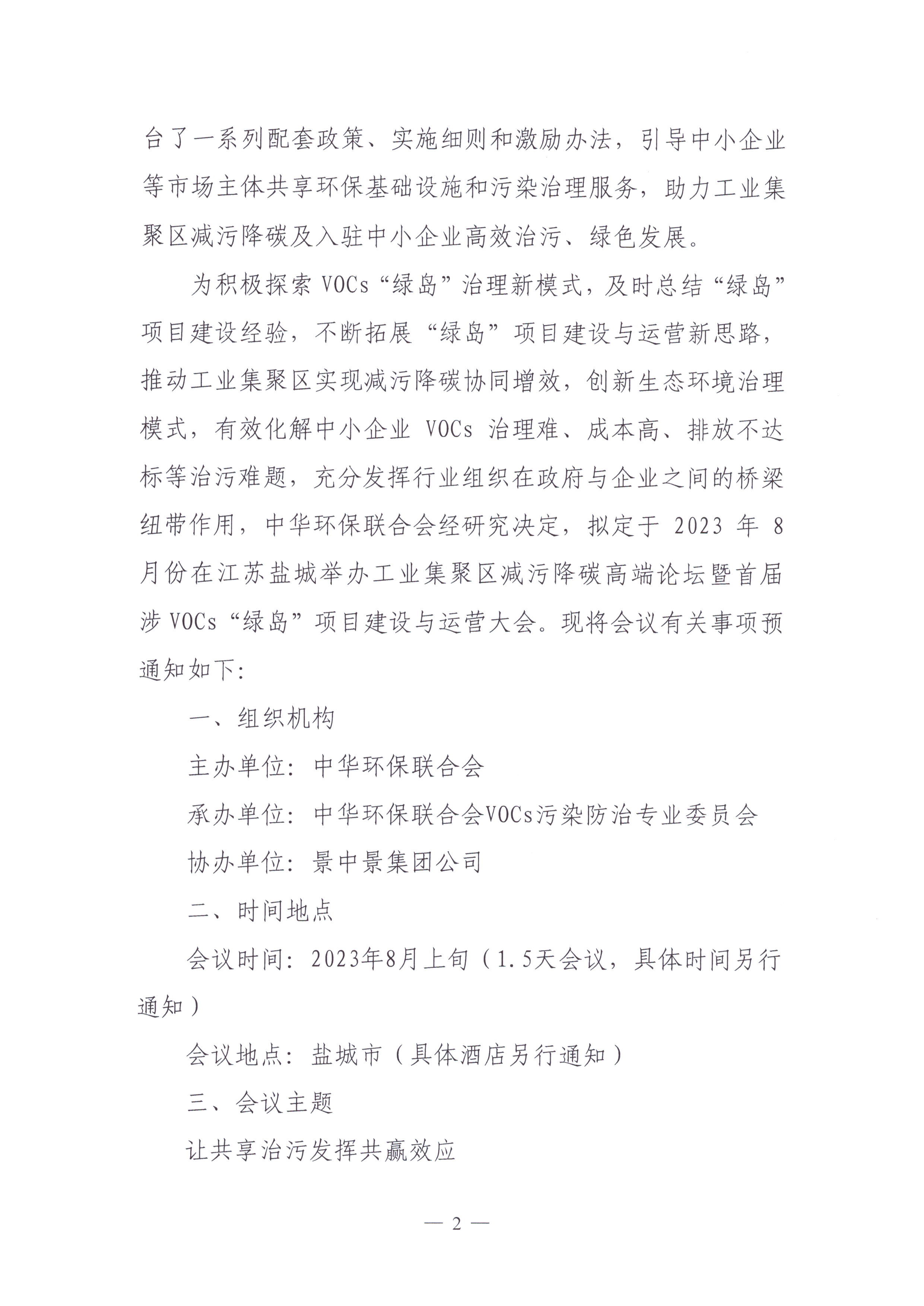 关于举办工业集聚区减污降碳高端论坛暨首届涉VOCs“绿岛”项目建设与运营大会的预通知