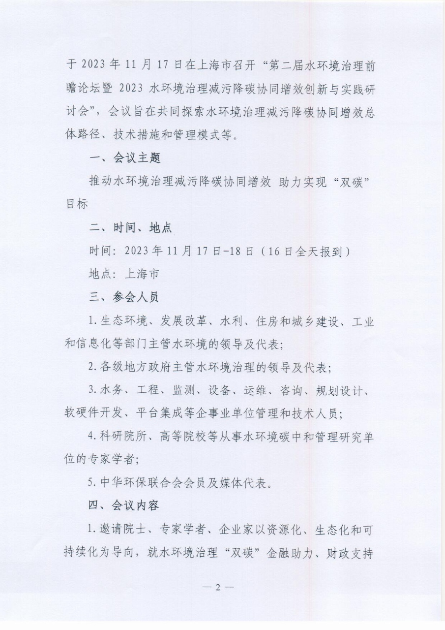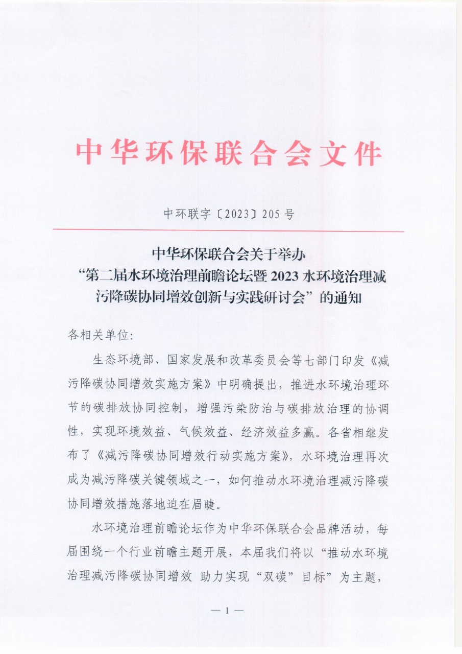 关于举办“第二届水环境治理前瞻论坛暨2023水环境治理减污降碳协同增效创新与实践研讨会”的通知