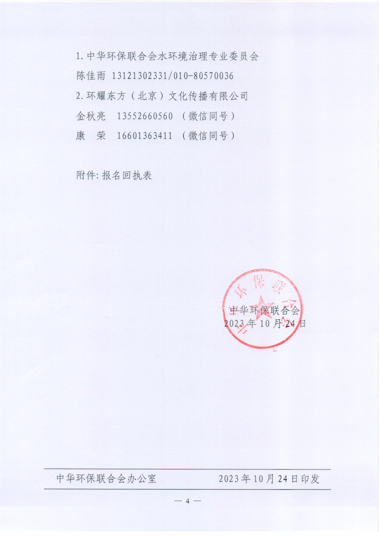 关于开展 2023年度中华环保联合会