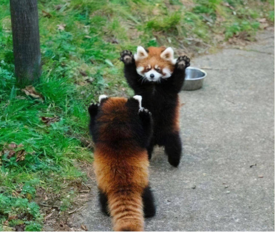 小熊猫性格胆小,防御能力弱,当受到惊吓时,小熊猫会站立起来,试图吓退潜在的威胁,这种天性也导致小熊猫在野外生存遭遇了很多困难。根据科研报告显示,目前全世界野生小熊猫的数量不足10000只,世界自然保护联盟已在2015年将小熊猫的濒危等级从“易危”调整到“濒危”,由于气候变化和盗猎,其生存境况比大熊猫更为严峻。