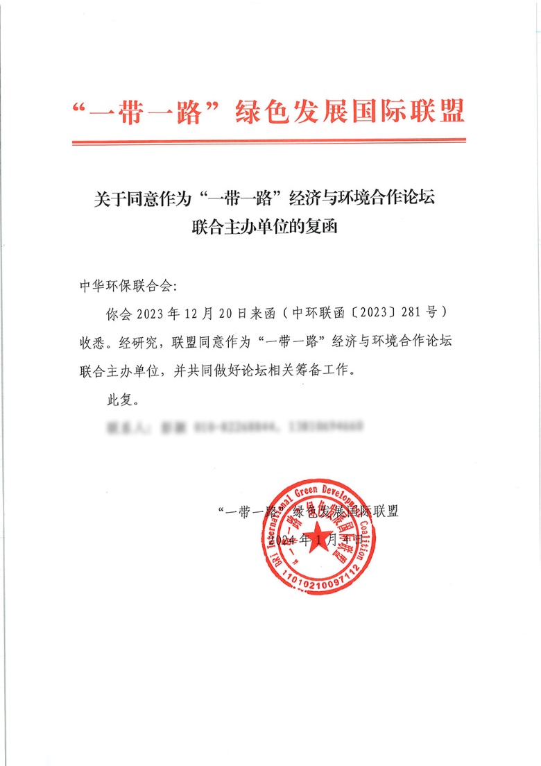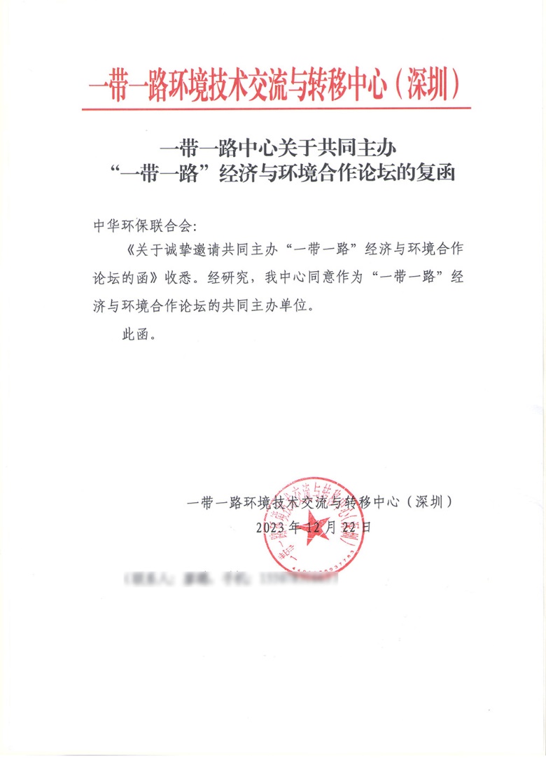 近日,我会收到“一带一路”绿色发展国际联盟、“一带一路”环境技术交流与转移中心(深圳)同意共同举办“一带一路”经济与环境合作论坛的复函。(附后)
