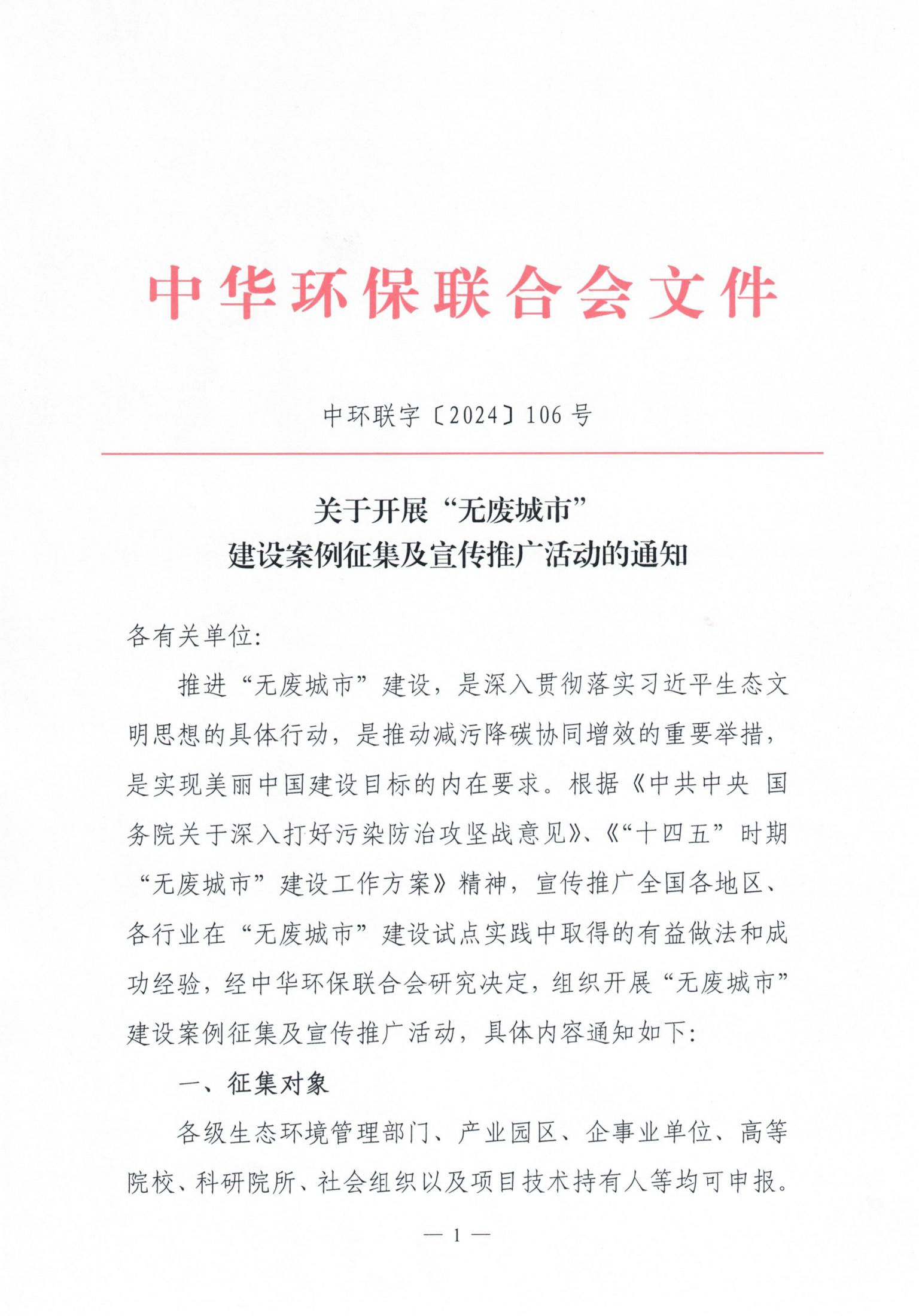 关于开展“无废城市”建设案例征集及宣传推广活动的通知
