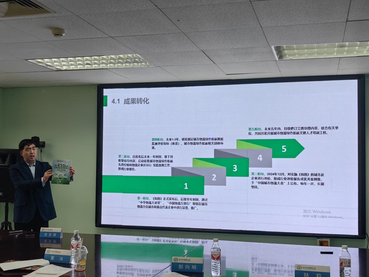 中国交通运输协会城市物流分会副秘书长郭向明介绍城市物流低碳发展指南以及计划围绕指南开展的相关工作