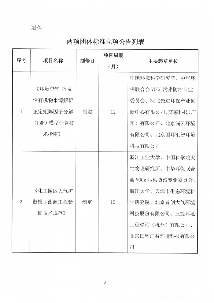 关于《环境空气 挥发性有机物来源解析 正定矩阵因子分解(PMF)模型计算技术指南》等两项团体标准立项的公告
