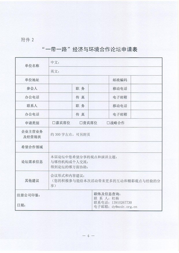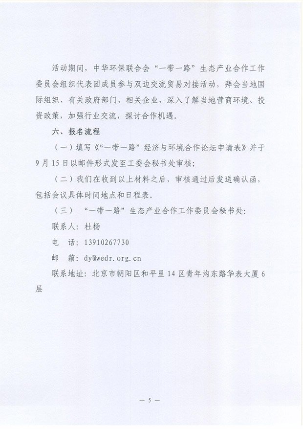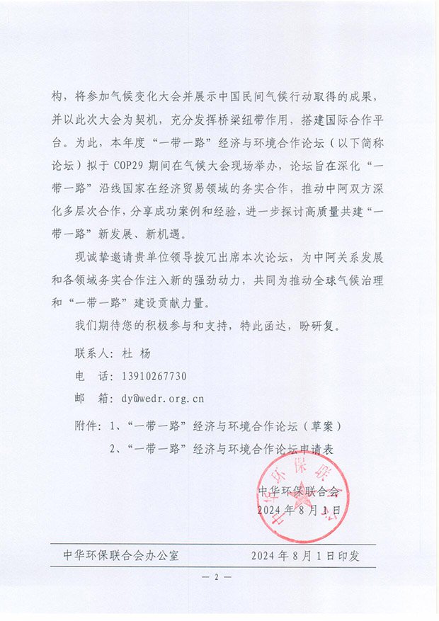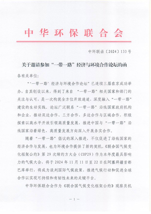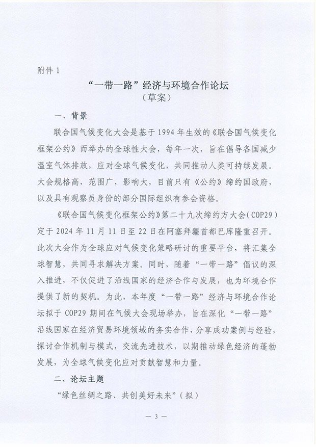 关于邀请参加“一带一路”经济与环境合作论坛的函