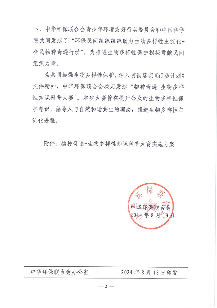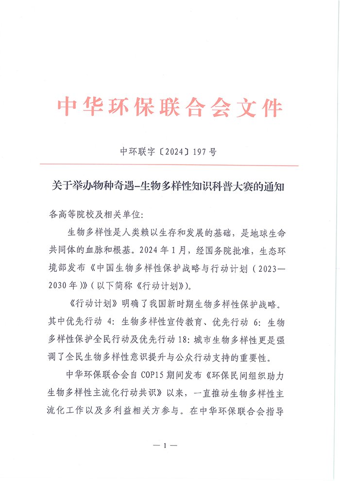 关于举办物种奇遇-生物多样性知识科普大赛的通知