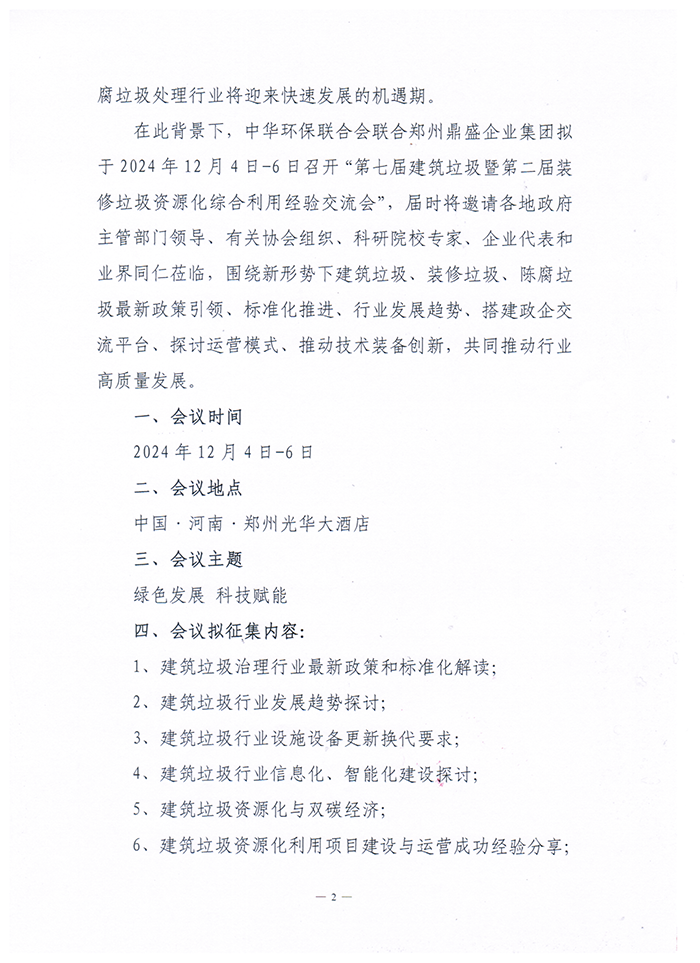 关于召开“第七届建筑垃圾暨第二届装修垃圾资源化综合利用经验交流会”的通知
