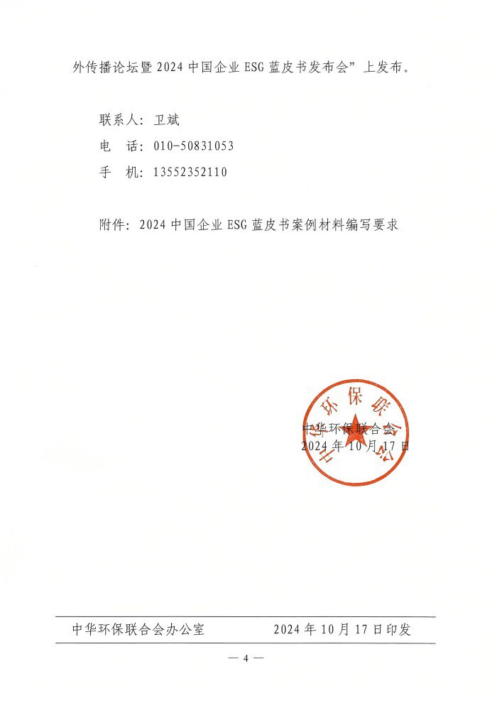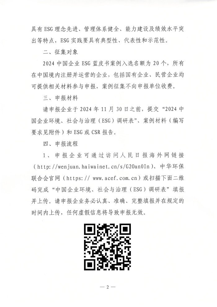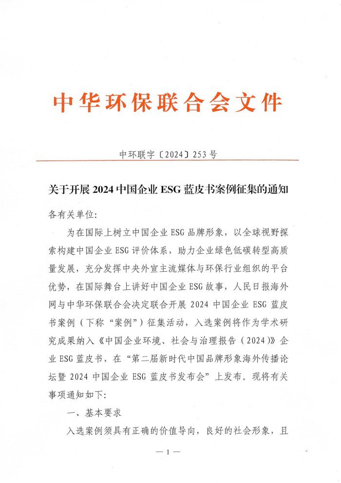 关于开展2024中国企业ESG蓝皮书案例征集的通知