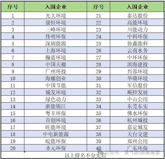 40家优秀垃圾清洁焚烧企业入围