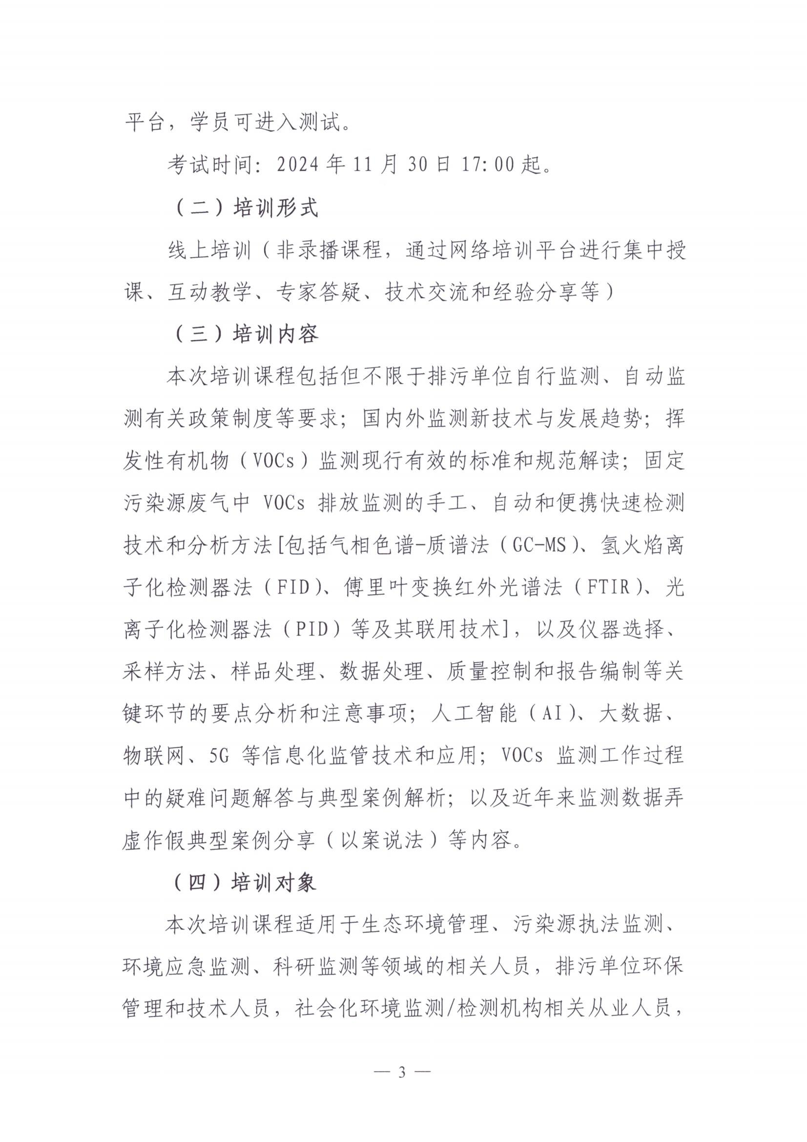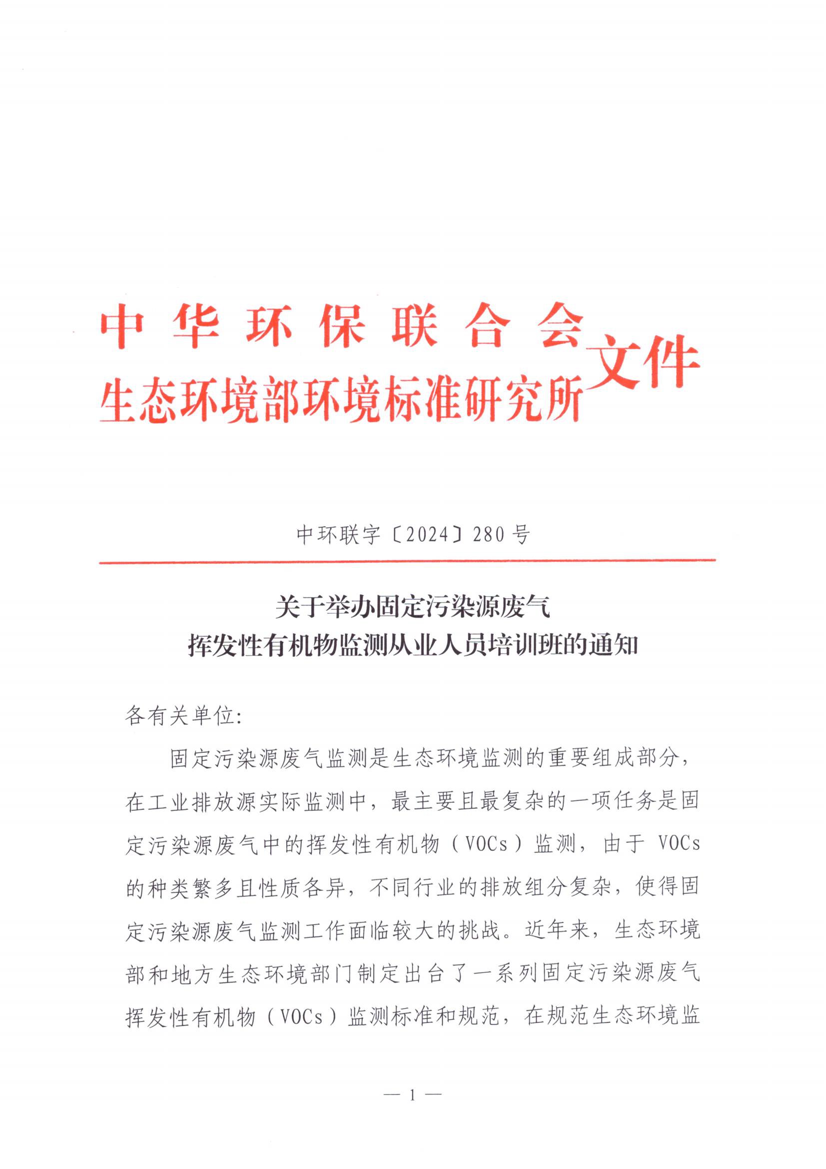 关于举办固定污染源废气挥发性有机物监测从业人员培训班的通知