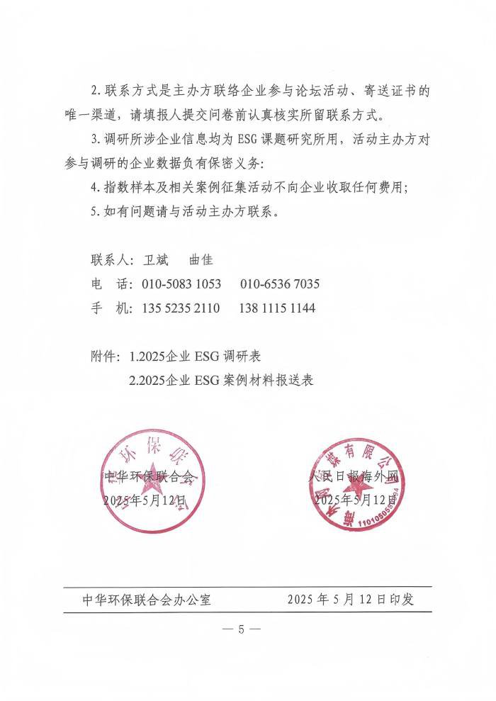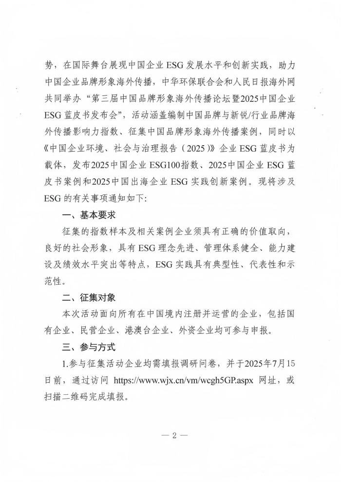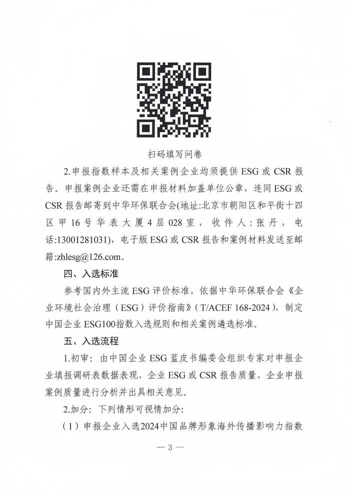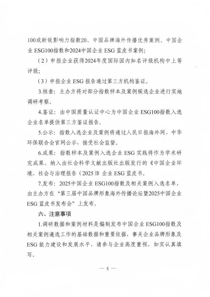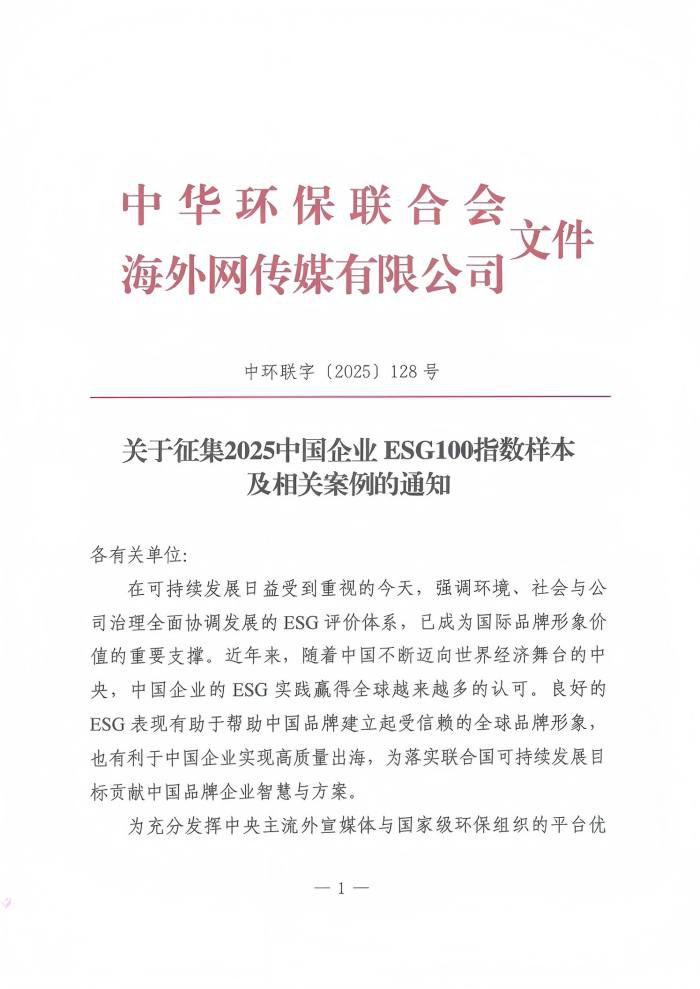 关于征集2025中国企业ESG100指数样本及相关案例的通知