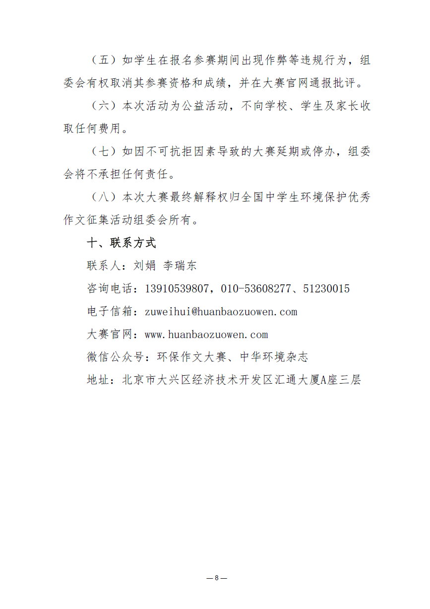 关于举办第七届全国中学生环境保护优秀作文征集活动的通知