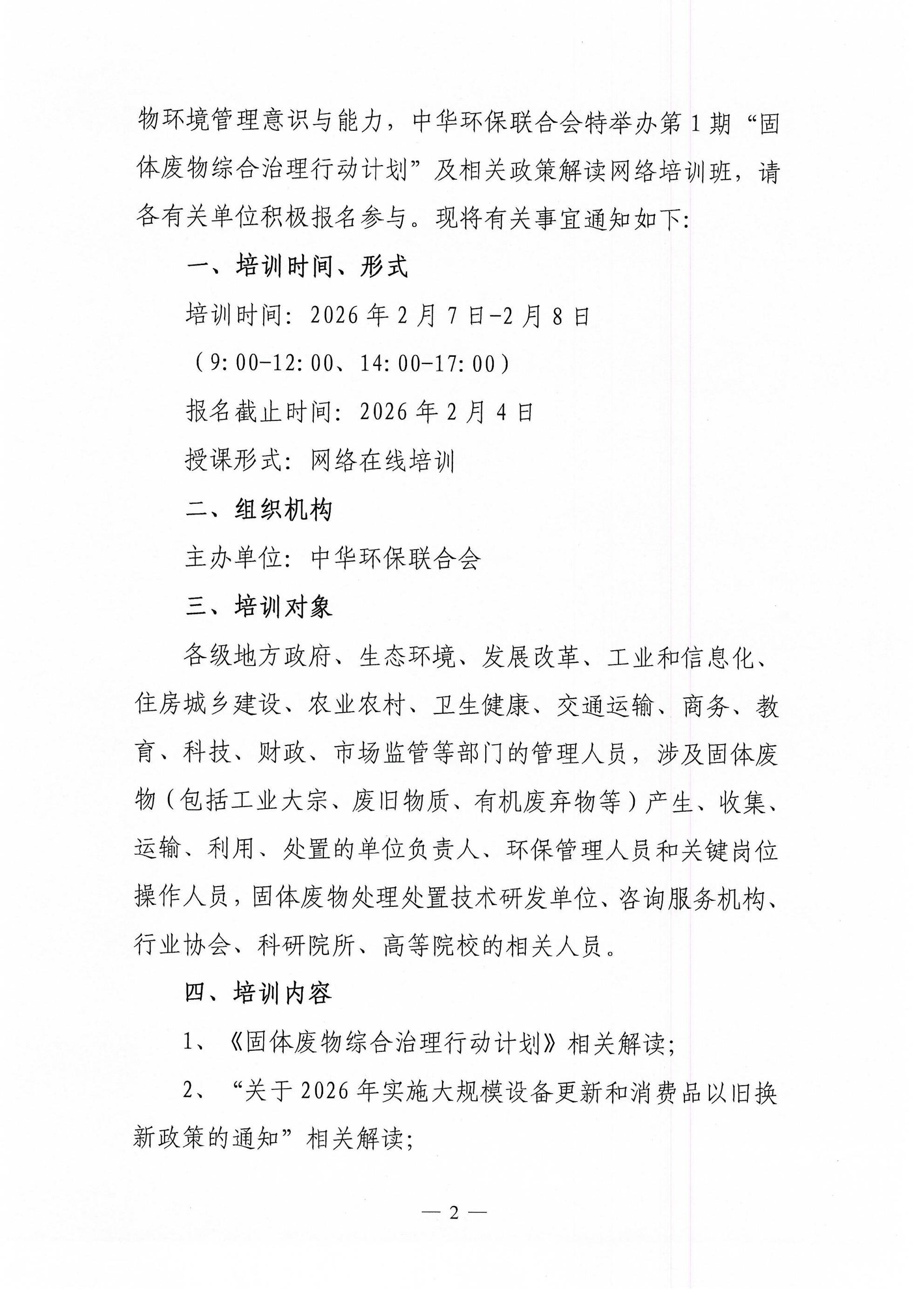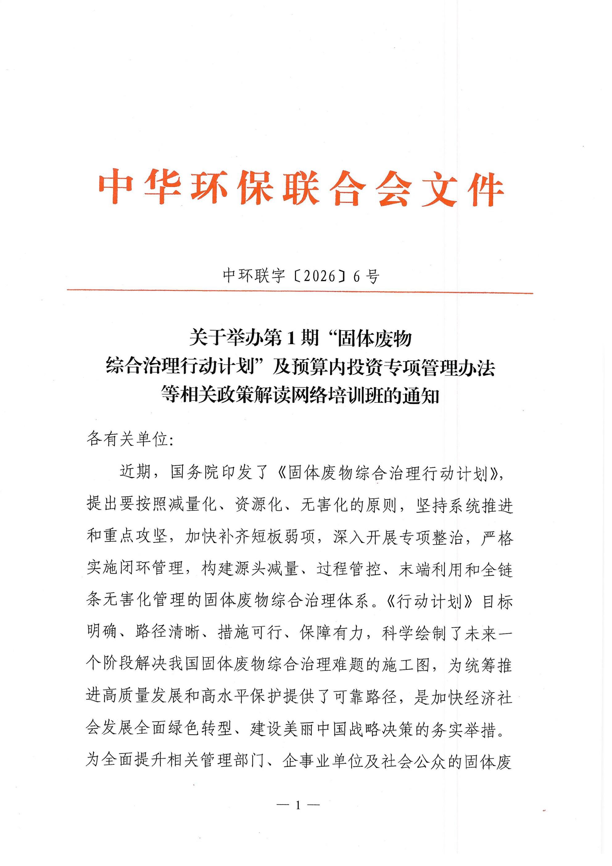 关于举办第1期"固体废物综合治理行动计划"及预算内投资专项管理办法等相关政策解读网络培训班的通知
