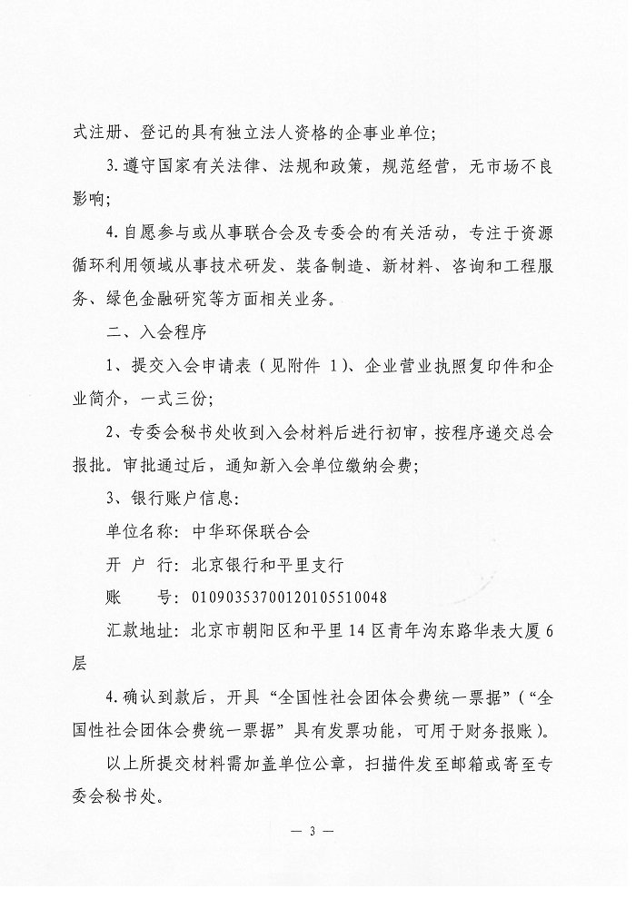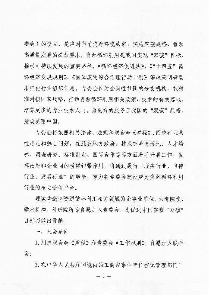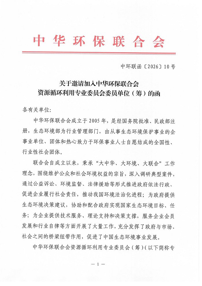 关于邀请加人中华环保联合会资源循环利用专业委员会委员单位(筹)的函