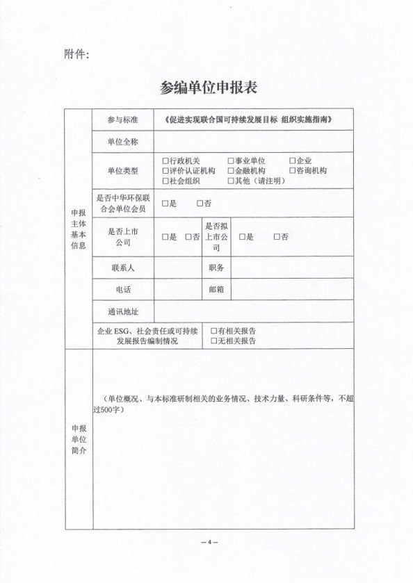 关于征集《促进实现联合国可持续发展目标 组织实施指南》国家标准参编单位的通知
