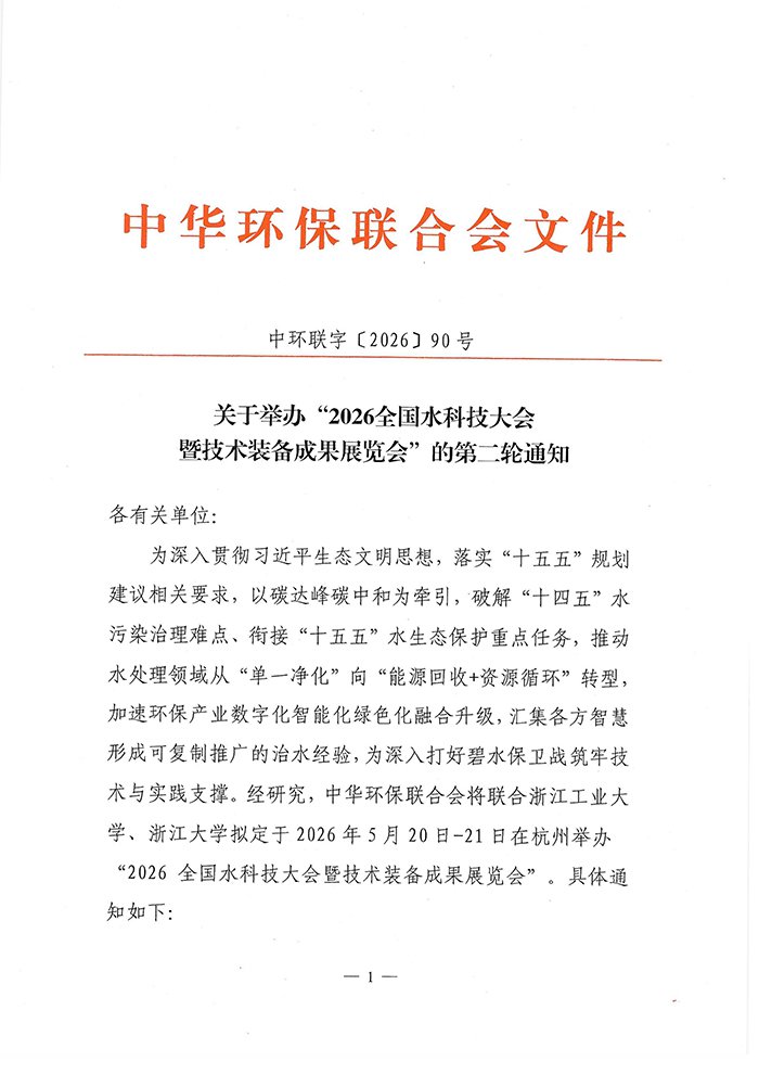 关于举办“2026全国水科技大会暨技术装备成果展览会”的第二轮通知
