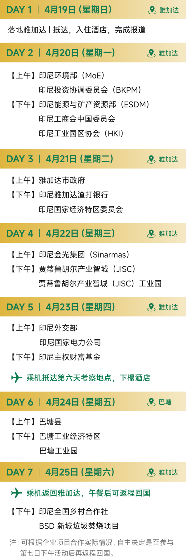 3. 考察详细行程将根据实际对接情况制定,具体以附件2、3为准,出发前将同步至各团员;