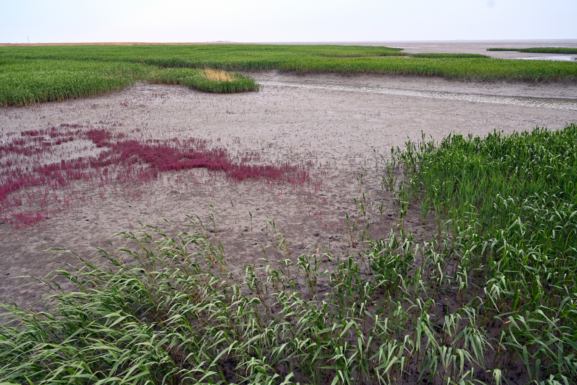 盘锦湿地包括芦苇沼泽、浅海海域、河流和库塘、水稻田、养殖池塘等湿地类型。