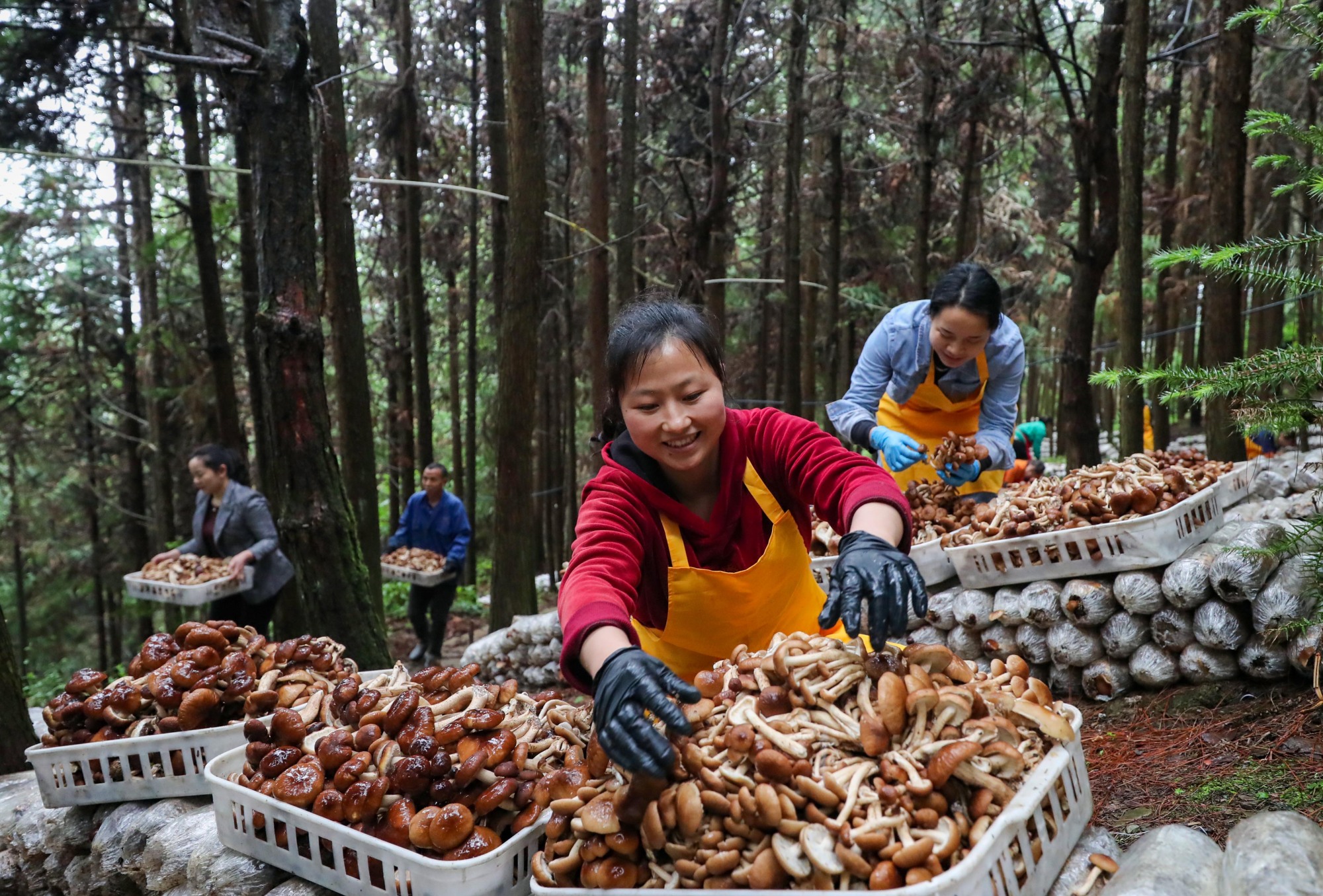 岑巩县平庄镇林下茶树菇丰收(胡攀学 摄)