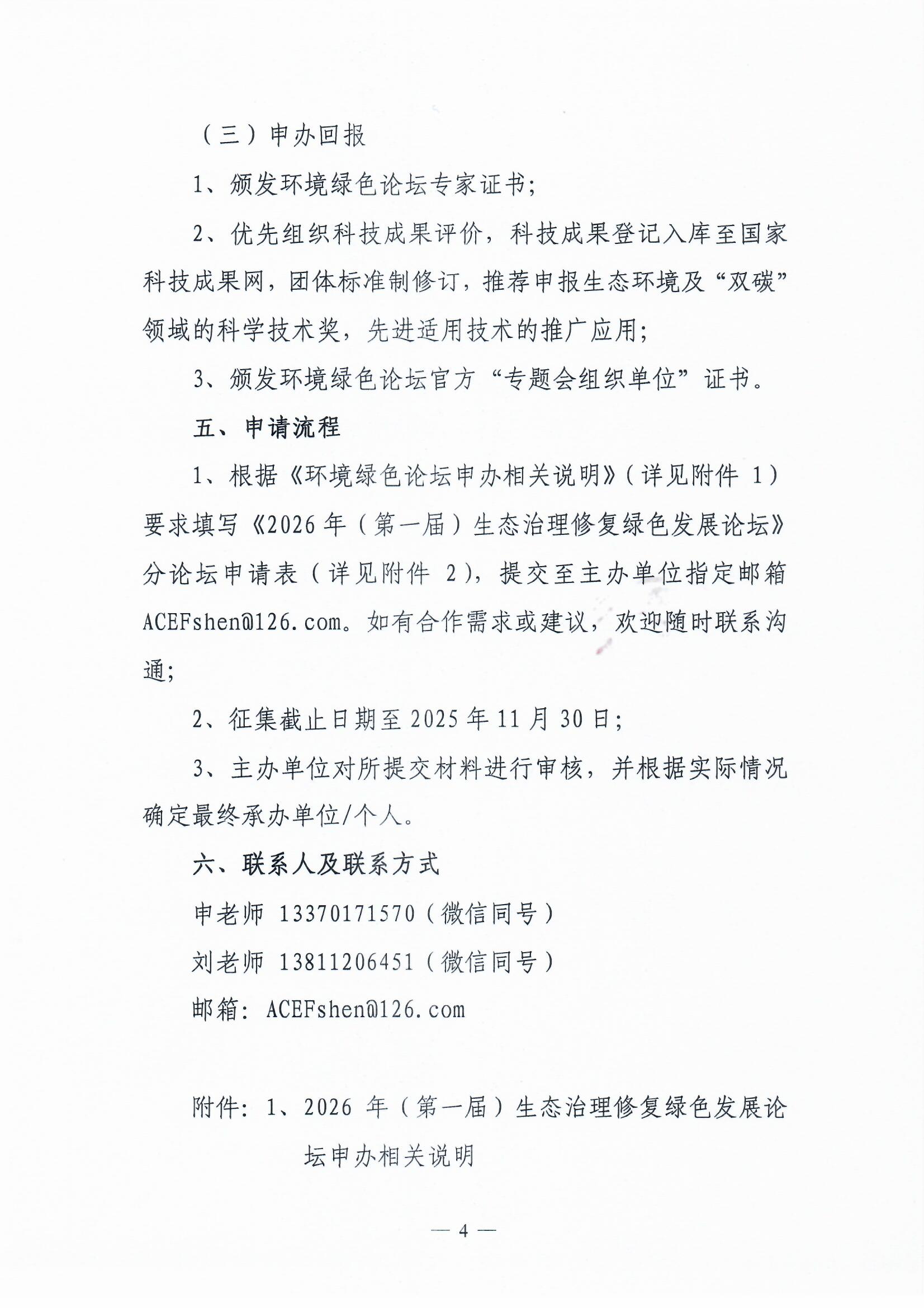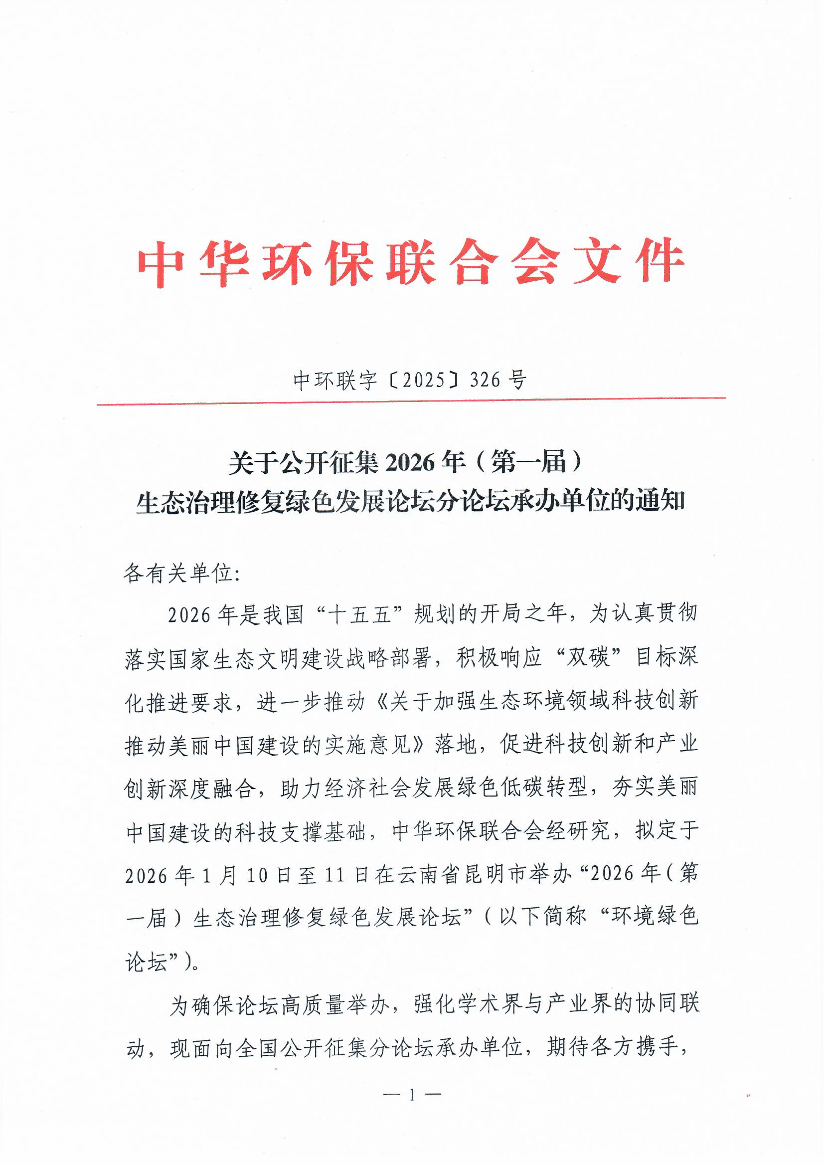 关于公开征集2026年(第一届)生态治理修复绿色发展论坛分论坛承办单位的通知