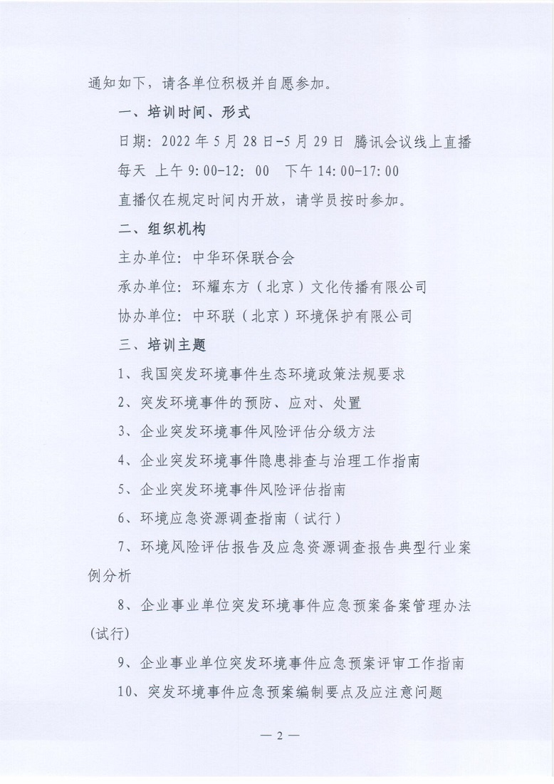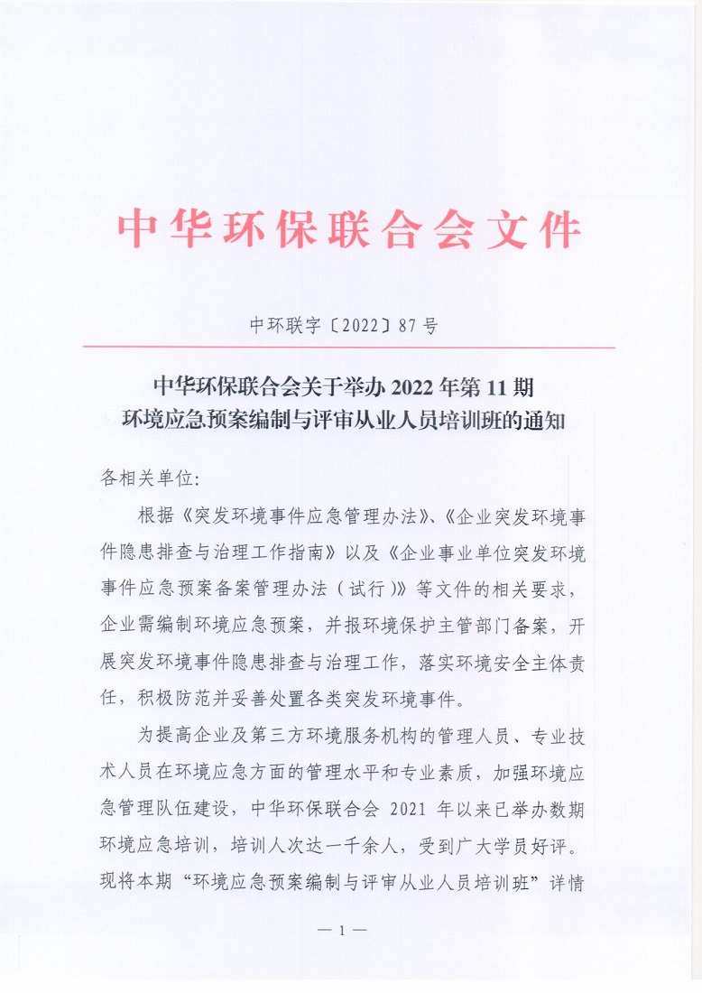 关于举办2022年第11期环境应急预案编制与评审从业人员培训班的通知