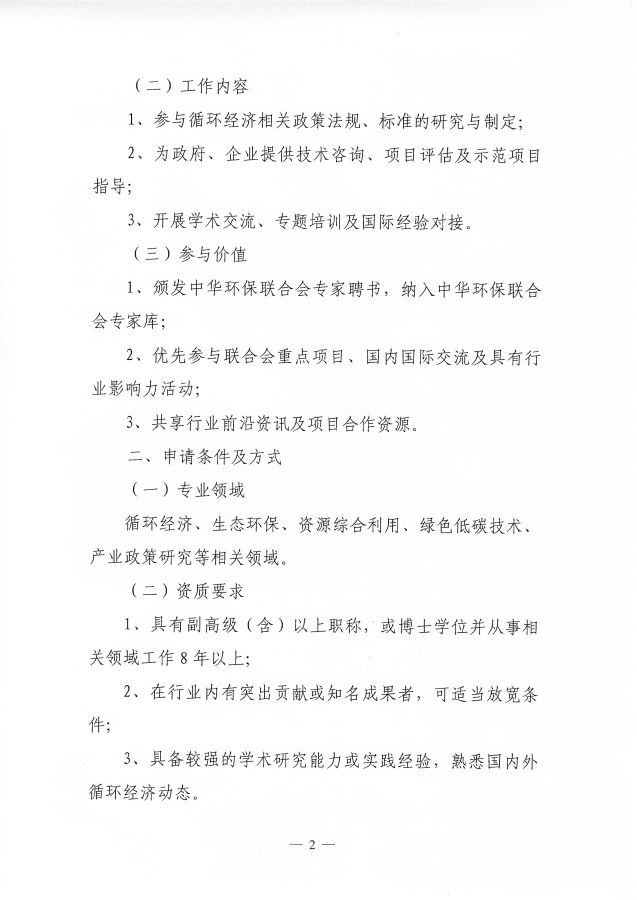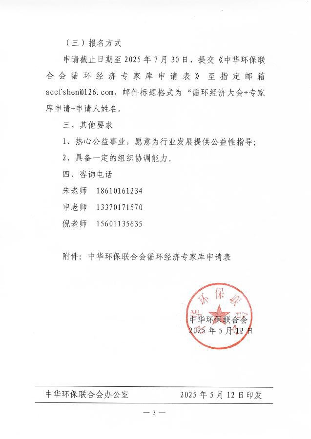 关于邀请加入中华环保联合会循环经济专家库的通知