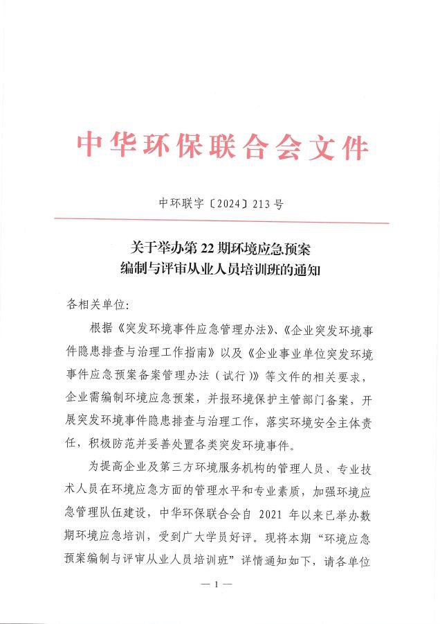 关于举办第22期环境应急预案编制与评审从业人员培训班的通知