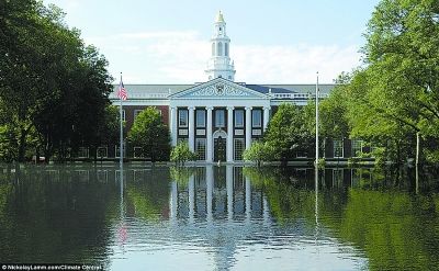 模拟图片显示,未来哈佛大学校园将成为一片湖泊。
