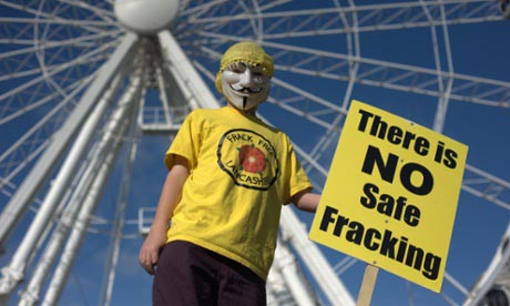 一位参加英国曼彻斯特反水压裂开采活动的抗议人士。(自《卫报》)